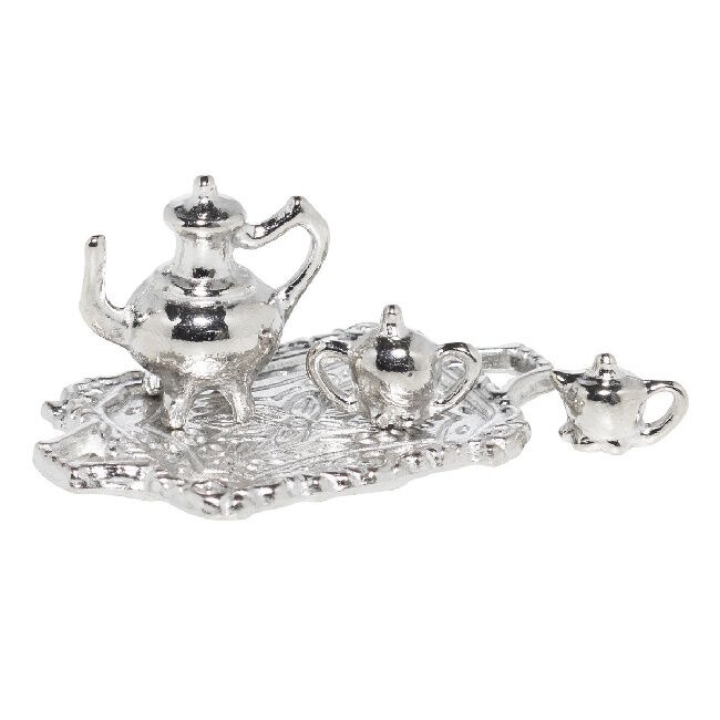 Miniatyyri, teesetin tarjotin on kooltaan 4,5 × 3 cm