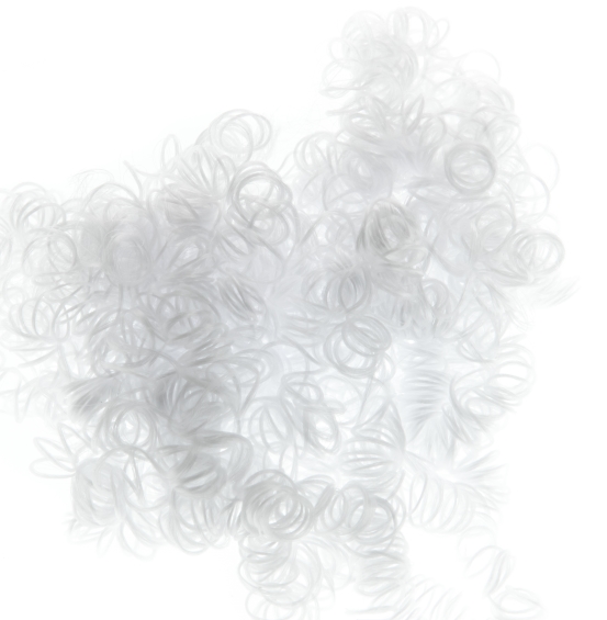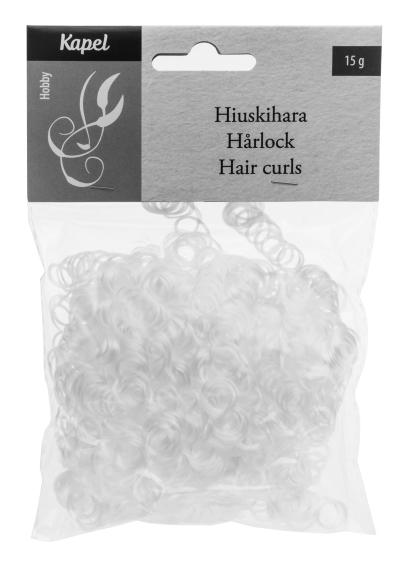 Viskoosi. Valkoinen tekotukka esimerkiksi joulupukille tai enkelille.