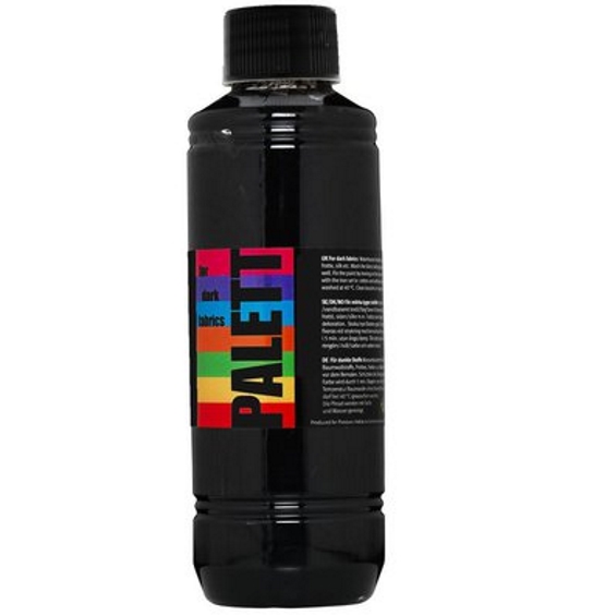 Palettin tekstiilimaali, kangasmaalaukseen tummille kankaille (puuvilla ja polyesteri). Kaikki tekstiilit on pestävä ennen maalausta. Älä maalaa paksuja kerroksia! Kun maali on kuivunut, kiinnitä se silittämällä nurjalta puolelta tai toisen kankaan läpi 3-5 minuuttia. 24 tunnin kuluttua maali kestää konepesu 40 ° C: ssa. Ei sisällä eläintuotteita.