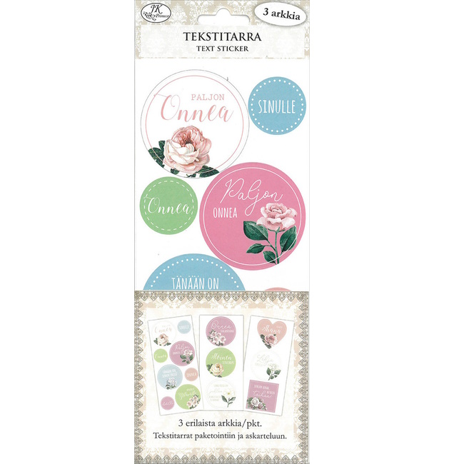 | Tekstitarra Iso Ruusut Pastelli 3ark/pkt | ||||