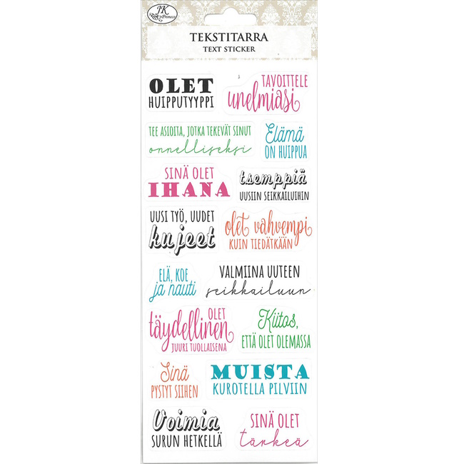 Tekstitarra korttiaskarteluun ja koristeluun.
