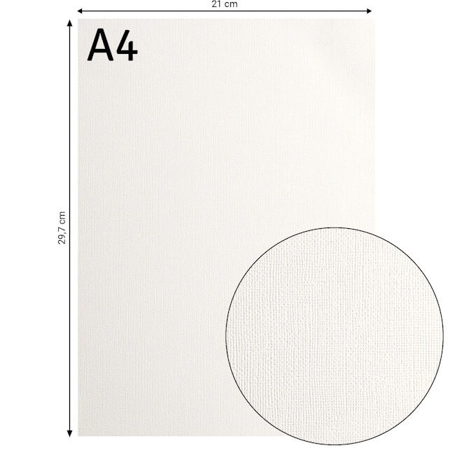 216 gsm kartonki jossa canvas-tekstuuri. Happo- ja ligniinivapaa. A4. 10kpl/pkt.