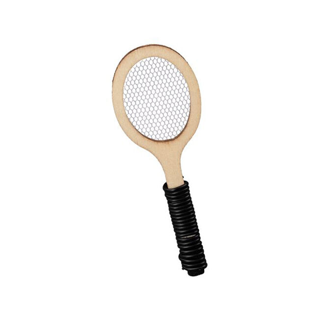 Miniatyyri tennismaila, koko noin 6,2 cm.