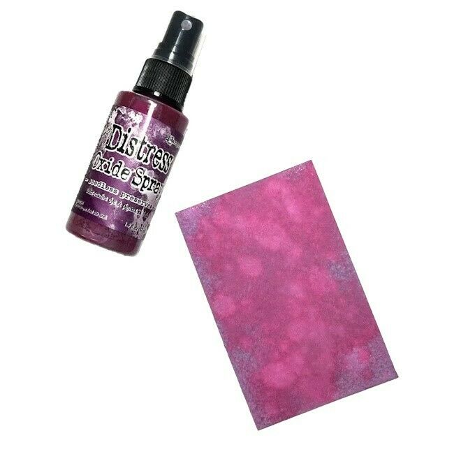 Tim Holtz Distress Oxide Spray helpottaa musteen levittämistä suuremmalle alueelle, kuten kortti- tai leikekirjan sivulle. Lisää vettä luodaksesi hapettunut, kalkkimainen vaikutelma. Suihkuta mustetta sapluunoiden läpi, levitä useita kerroksia, suihkuta vettä musteen päälle ja anna värien virrata toisiinsa. Kun lisäät vettä, muste jatkaa reagoimista tuntien tai jopa päivien ajan. Kätevän suihkepullon avulla voit suihkuttaa nestemäistä mustetta pieninä määrinä uskomattoman luovien vaikutusten saavuttamiseksi. Oksidisuihke näkyy sekä vaalealla että tummalla paperilla.