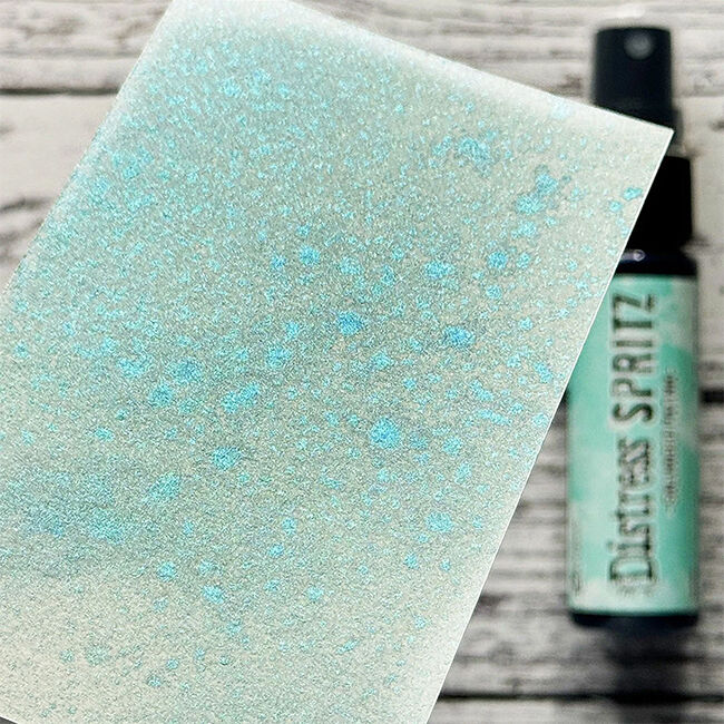 Distress Spritzit ovat helmiäispigmenttien sekoituksia kirkkaassa nestemäisessä pohjassa käytettäväksi huokoisilla pinnoilla, kuten paperilla, kankaalla, puulla ja muilla.