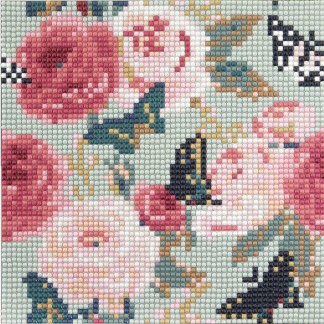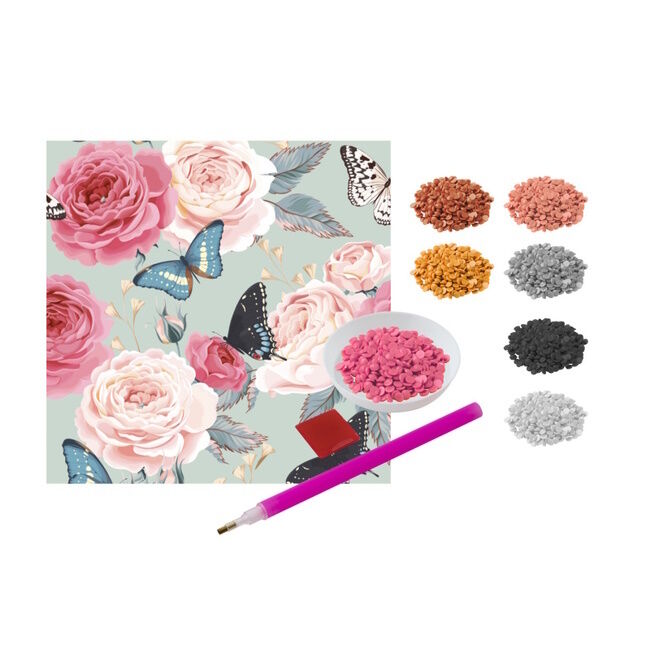 1 painettu värillinen kangasosa - Kankaan koko 20 x 20 cm. Timanttikynä, tarjotin timanttihelmille ja vahalle (kitti)