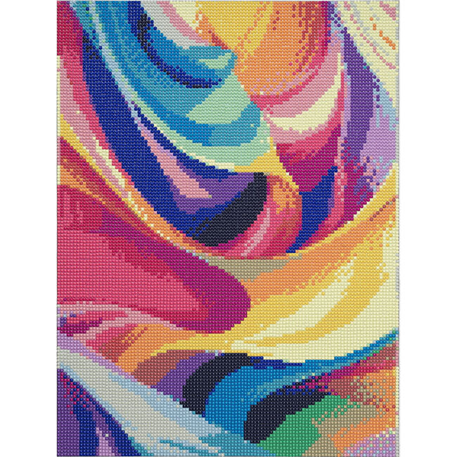 Setin aihe on hieman abstrakti ja siinä on kauniita aaltovärejä. Aihe on painettu 30 × 40 cm:n kankaalle numeroilla. Mukana on myös applikaattori, silikoni, kulho ja useita pusseja, joissa on pieniä värillisiä "timantteja", jotka on valmistettu muovista ja joiden halkaisija on noin 2 mm. Valitse väri, täytä kulho, poista suojamuovi ja aloita maalaaminen. Jos sinun täytyy pitää tauko, muista laittaa muovi takaisin paikoilleen.