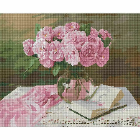 Timanttimaalaustaulu 40x50cm Pinkit ruusut ja kirja