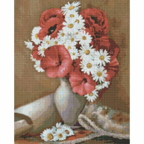 | Timanttimaalaustaulu 40x50cm Punavalkoiset kukat | ||||