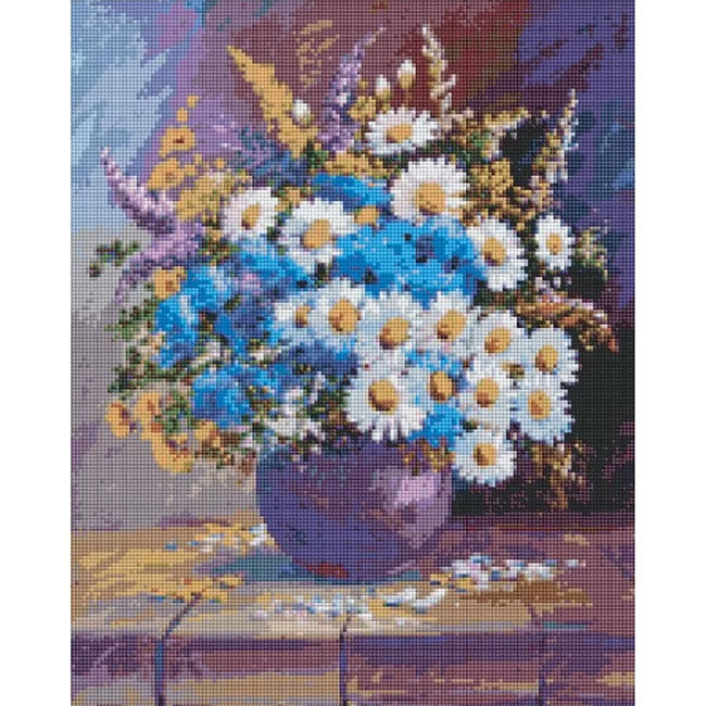 | Timanttimaalaustaulu 40x50cm Sini-valkoiset kukat maljakossa | ||||