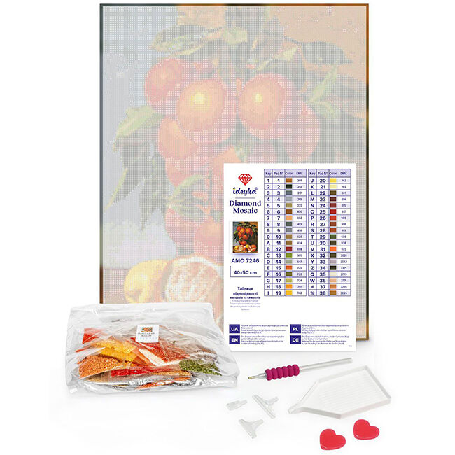 5D -timanttimaalaussarja sisältää: öljymaalauskankaan, timanttileikatut värilliset strassihelmet, kivitarjottimen ja kynätyökalut strassihelmien kiinnittämiseen kankaalle. Kankaan taustakuvio on vedenpitävä ja tasalaatuinen, muovipaperilla, jotta kuva pysyy tahmeana ja timantti pysyy paikoillaan, jotta kuva voidaan suojata.