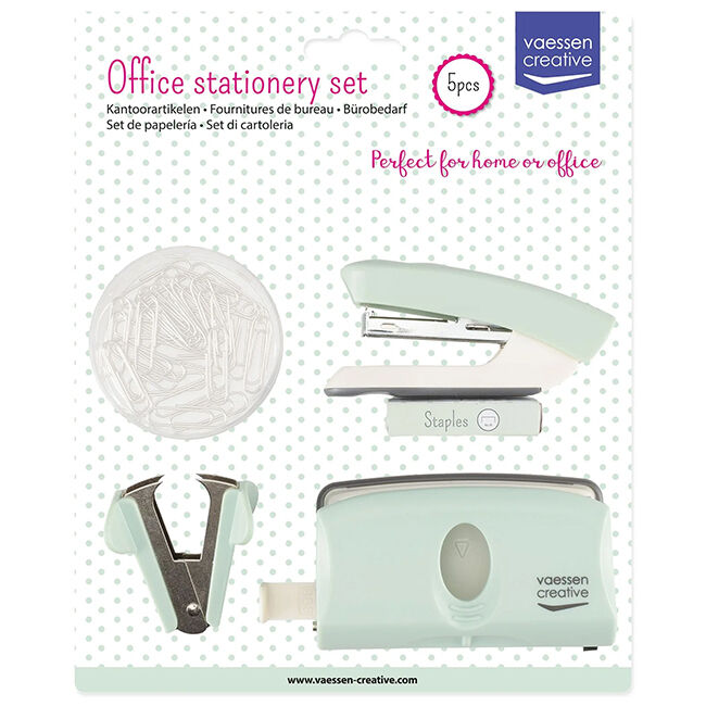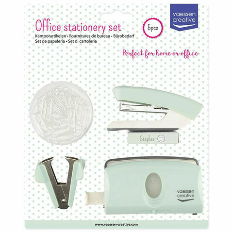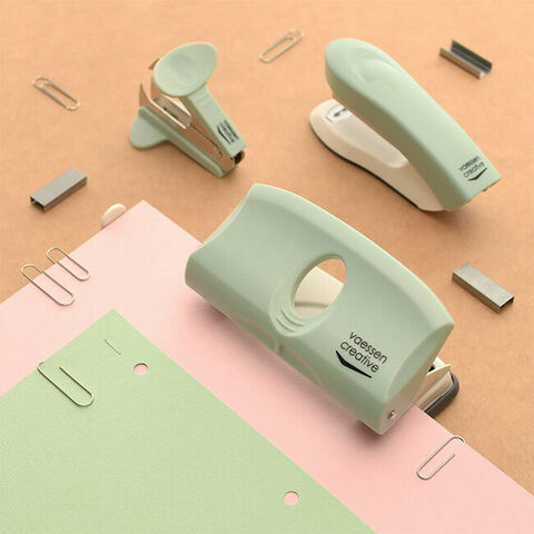 Tämä toimistotarvikesetti täydentää työpöytäsi. Nitojalla voit helposti nitoa jopa 12 paperiarkkia kerralla. Ihanteellinen askarteluun. Niitinpoistaja tekee niittien poistamisesta erittäin helppoa ja paperiliittimet ovat hyödyllinen ja vähemmän pysyvä kiinnitysvaihtoehto. Rei'itin tekee reikiä jopa 10 arkkiin kerrallaan, joten sivujen, valokuvien, muistiinpanojen tai muistutusten lisääminen päiväkirjaan, leikekirjaan, bullet journaliin tai kalenteriin on helppoa ja nopeaa.