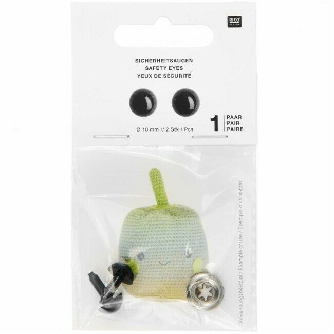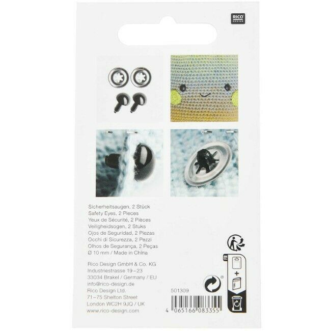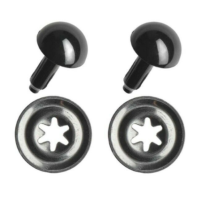 Kestävästä muovista valmistetut turvasilmät askarteluun. Silmät koostuvat silmäosasta, jonka varsi työnnetään työn läpi ja kiinnitetään napakasti nurjalta puolelta mukana tulevan muovirenkaan avulla.