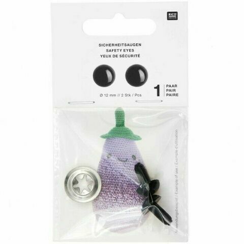 Kestävästä muovista valmistetut turvasilmät askarteluun. Silmät koostuvat silmäosasta, jonka varsi työnnetään työn läpi ja kiinnitetään napakasti nurjalta puolelta mukana tulevan muovirenkaan avulla.