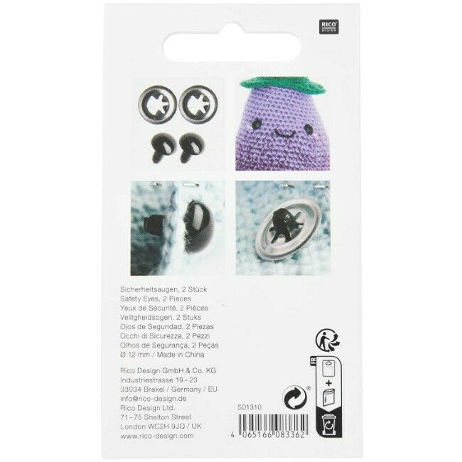 Kestävästä muovista valmistetut turvasilmät askarteluun. Silmät koostuvat silmäosasta, jonka varsi työnnetään työn läpi ja kiinnitetään napakasti nurjalta puolelta mukana tulevan muovirenkaan avulla.