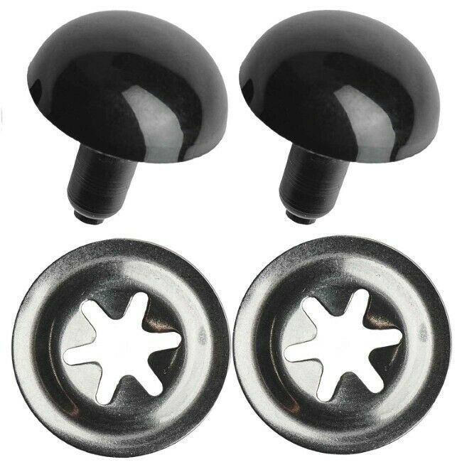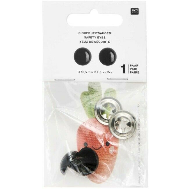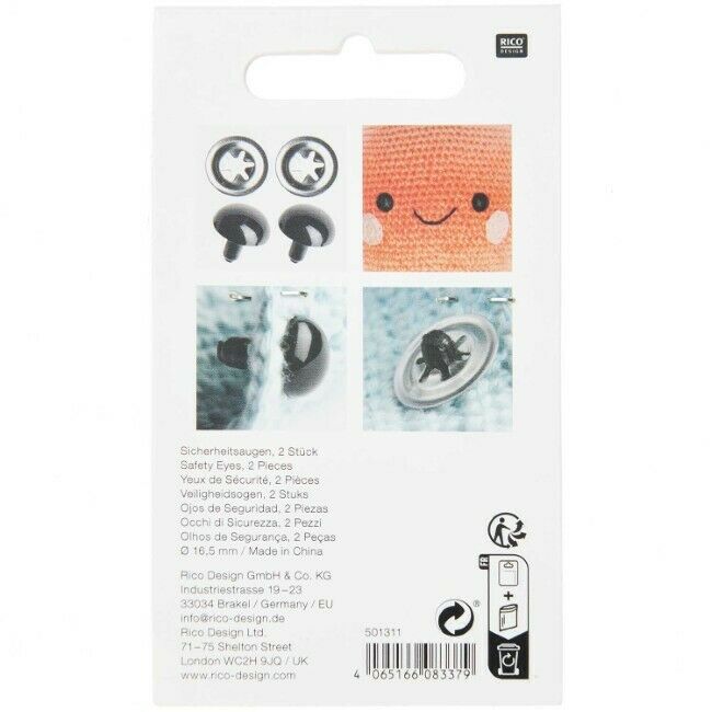 Kestävästä muovista valmistetut turvasilmät askarteluun. Silmät koostuvat silmäosasta, jonka varsi työnnetään työn läpi ja kiinnitetään napakasti nurjalta puolelta mukana tulevan muovirenkaan avulla.