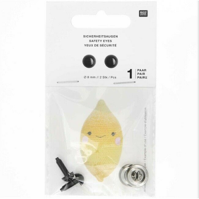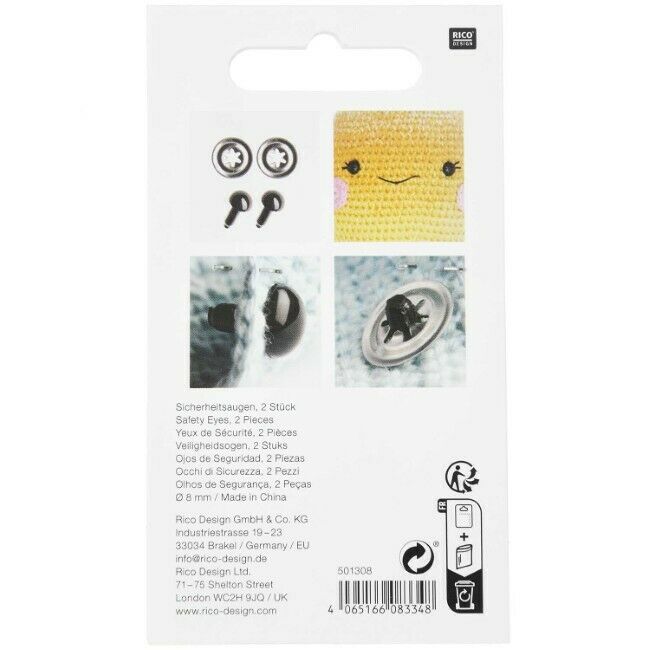 Kestävästä muovista valmistetut turvasilmät askarteluun. Silmät koostuvat silmäosasta, jonka varsi työnnetään työn läpi ja kiinnitetään napakasti nurjalta puolelta mukana tulevan muovirenkaan avulla.