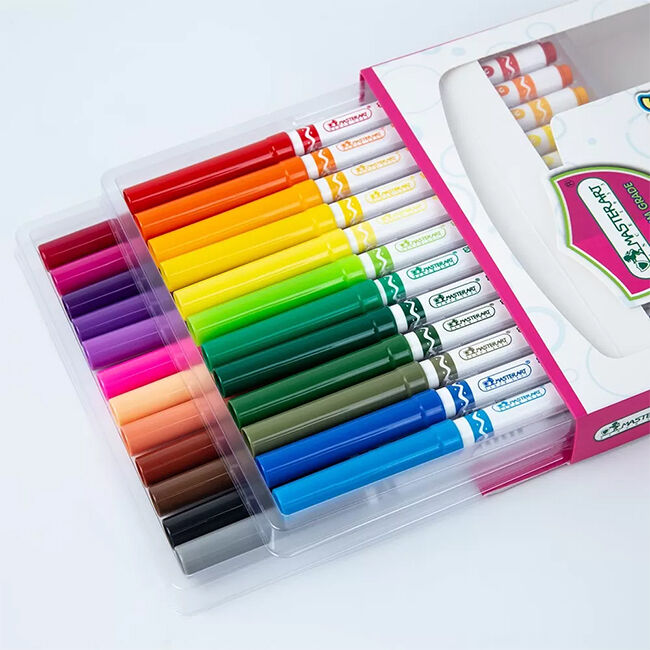 Helppokäyttöiset tussit lasten piirustushetkiin. Tussien laadukkaiden kärkien ansiosta ne kestävät hyvin käyttöä. Kirkkaat värit. Helppo pestä pois käsistä ja vaatteista.