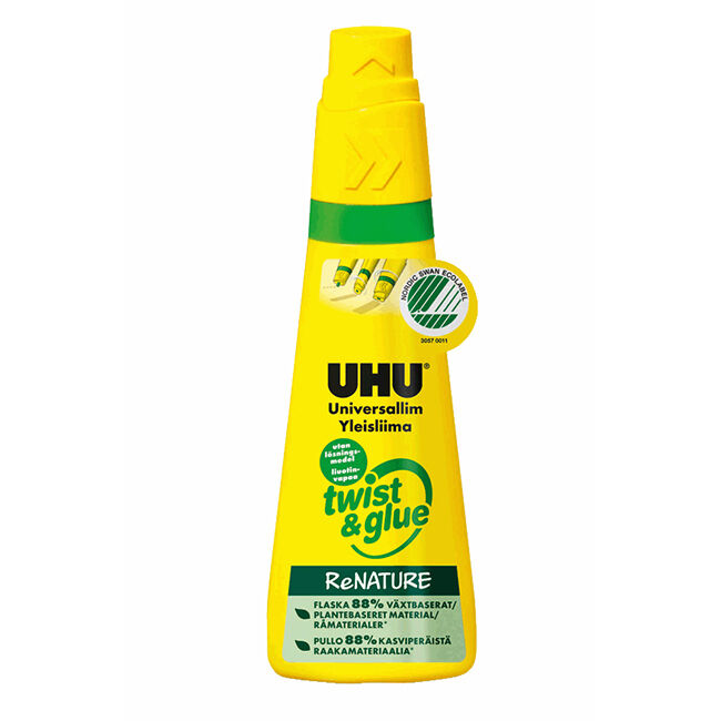 Liuottimeton monikäyttöliima kouluun, kotiin ja toimistoon. Ainutlaatuinen kolmioasentolevitin, jolla saa aikaan liimatäpliä, viivoja ja suurempia liimapintoja. Pestävissä pois saippuavedellä. Pullo on valmistettu 88% kasviperäisestä raakamateriaalista. Liima on valmistettu 70% kasvipohjaisista raaka-aineista.