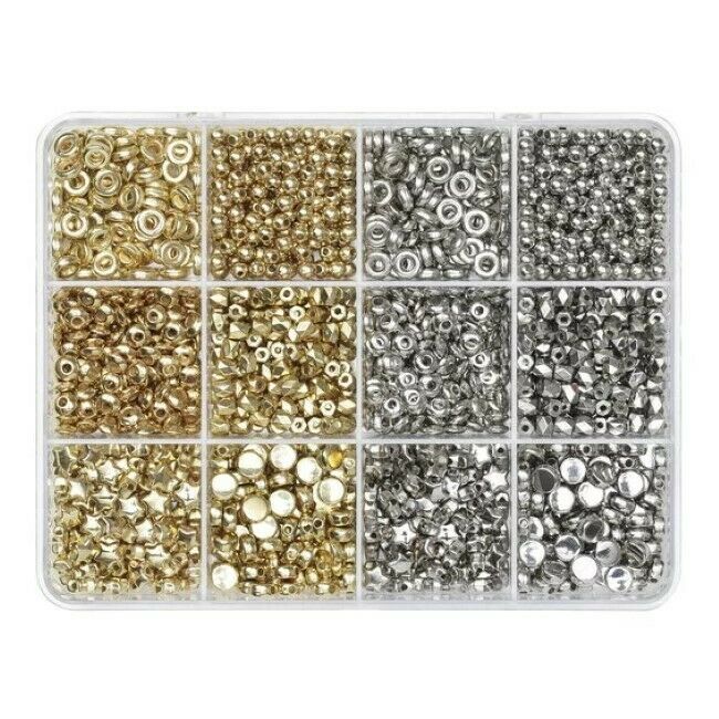 Kauniit hopean ja kullan väriset välihelmet, joita on hyvä käyttää omien korujen valmistukseen. Rannekorut, korvakorut ja kaulakorut – ne sopivat melkein mihin tahansa. Sekoita materiaaleja ja eri tyyppisiä helmiä saadaksesi yksilöllisen vaikutelman. Puu, Heishi, Hama, Rocailles - on todella 1000 erilaista mahdollisuutta luoda jotain täysin ainutlaatuista, joka on sinun, ja vain sinun! helmet on valmistettu akryylimuovista. Pakkaus sisältää noin 1280 kpl.