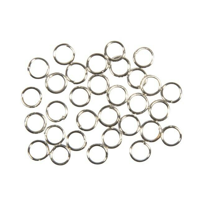 Pyöreät välirenkaat, korujen valmistukseen. Hopeanvärinen metalli. Renkaan koko 4,6mm. Langan paksuus 0,6mm. 30 kpl.