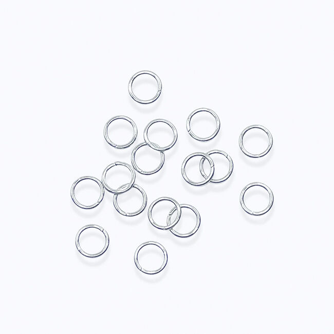Kestävät ja tummumattomat välirenkaat korunvalmistukseen. Nämä lenkit ovat jämäkät, eivätkä aukeile itsekseen. Hyvä peruskoko esimerkiksi korvakorujen ja rannekorujen valmistukseen.