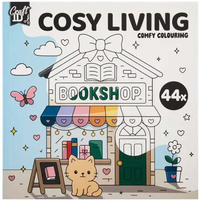Comfy Colouring värityskirjassa on 4 testisivua joilla voit harjoitella ja 20 väritettävää sivua kahteen kertaan, yhteensä 40 väritettävää kuvaa.