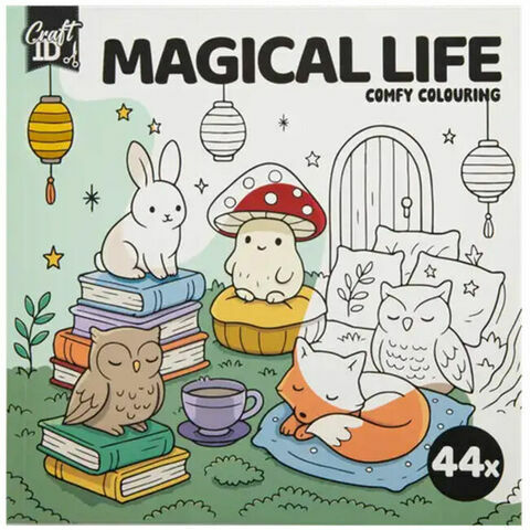 Comfy Colouring värityskirjassa on 4 testisivua joilla voit harjoitella ja 20 väritettävää sivua kahteen kertaan, yhteensä 40 väritettävää kuvaa.
