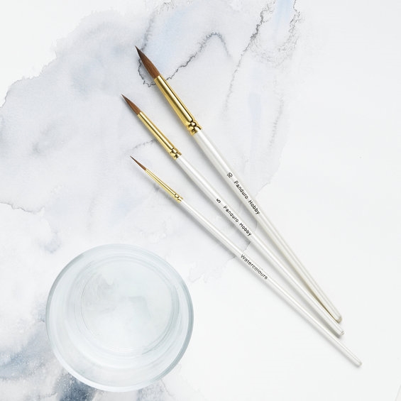 Pyöreä sivellin vesiväri, akvarellimaaleille. Näädänkarvaa. Hyvä kestävyys ja muodossaanpysyvyys. Puuvarsi 13-14 cm. Nro 2/0 (0,5 mm)