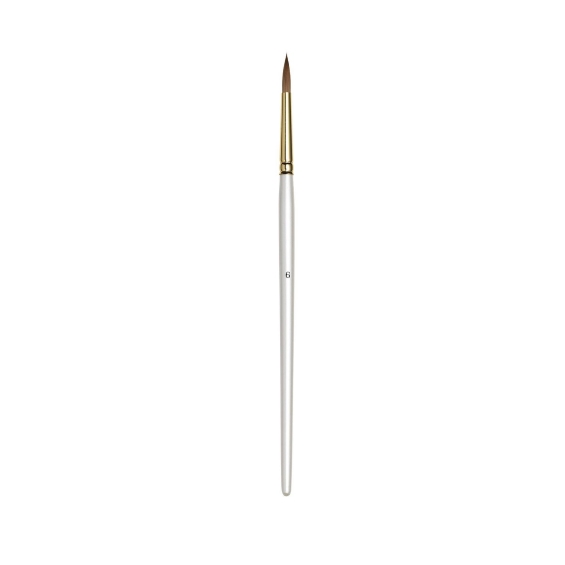 Pyöreä sivellin vesiväri, akvarellimaaleille. Näädänkarvaa. Hyvä kestävyys ja muodossaanpysyvyys. Puuvarsi 13-14 cm. Nro 6/0 (3,5 mm)