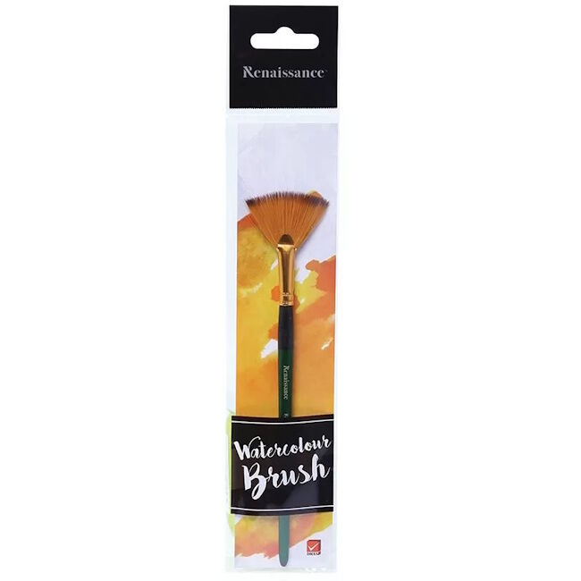 Viuhka vesivärisivellin, jonka leveys on 4,5 cm. Sivellin pysyy hyvin muodossaan.