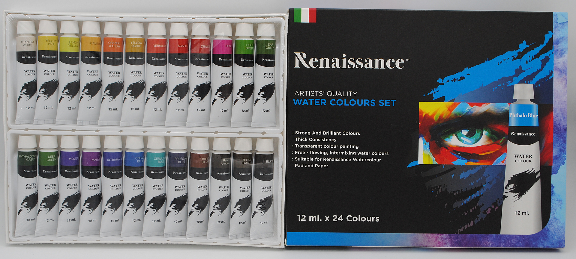 Paketti sisältää 24 eri väriä 12ml tuubeissa.