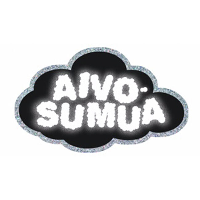 Vinyylitarra, jossa mustan pilven muotoisella pohjalla teksti "Aivosumua", tehosteena glitteriä.
