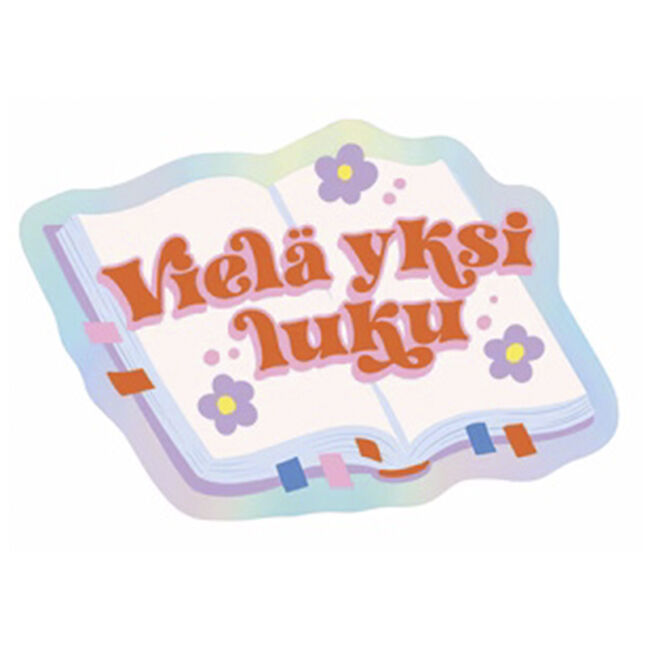 Vinyylitarra, jonka kuvassa on avoinna oleva kirja ja teksti "Vielä yksi luku", tehosteena hologrammifoliota.