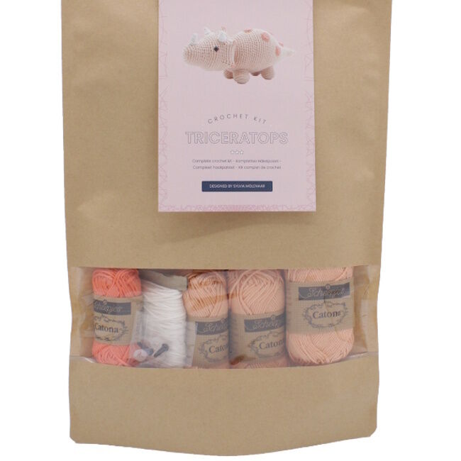 Setissä tarvikkeet ihanan pehmeän virkatun eläimen luomiseksi.