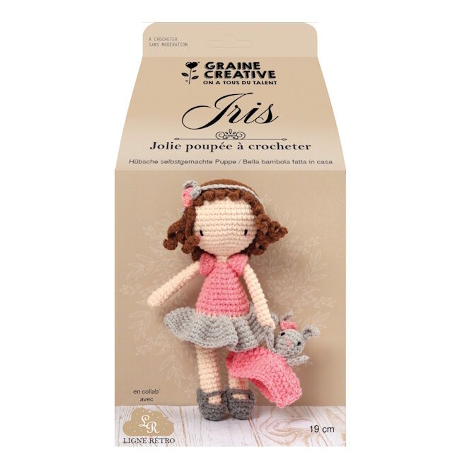 Herätä suloinen nukke henkiin tällä amigurimi-virkkaussetillä. Tämä paketti on tehty yhteistyössä virkkauskuviosuunnittelijan Ligne Rétron kanssa. Tästä paketista löydät kaiken mitä tarvitset nuken virkkaukseen. Valmis nukke on noin 19 cm pitkä.