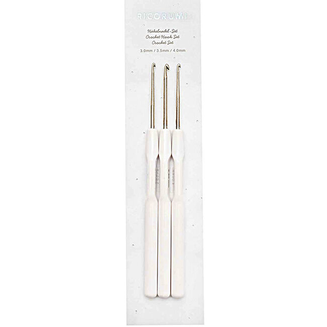• Ricorumi virkkauskoukkusarja, jossa 3 koukkua • Koot: 3, 3,5 ja 4 mm • Materiaali: alumiini muovikahvalla