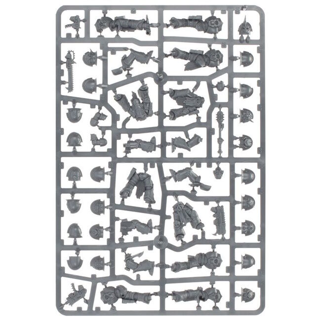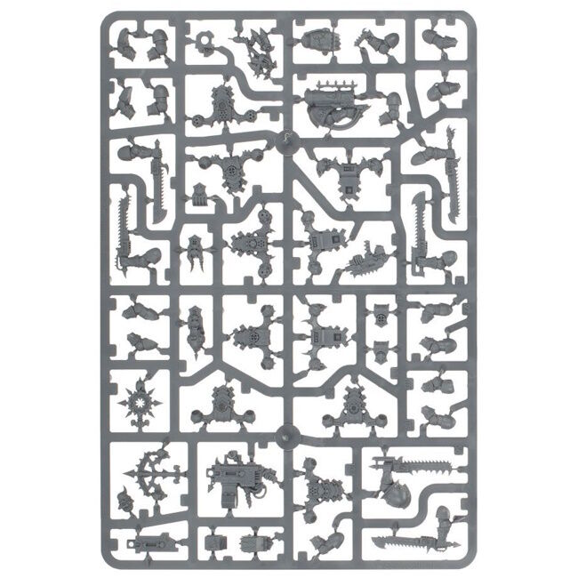 This kit builds 10 Chaos Space Marines, with your choice of weapons. The set is absolutely packed with optional extras, giving you the choice of arming every member of the squad with close-combat weapons and pistols or ranged wargear. You'll be able to add your choice of plasma gun, flamer, meltagun, heavy bolter and missile launcher. Optional components let you build up to two Aspiring Champions, giving you the freedom to build the set as a single squad of 10 or two squads of 5. A Chaos icon, interchangeable components and optional grenades offer you even more choice, ensuring no two units need look alike. The set is even designed to be compatible with the Havocs, allowing you to mix and match heavy weapons for even more choice.