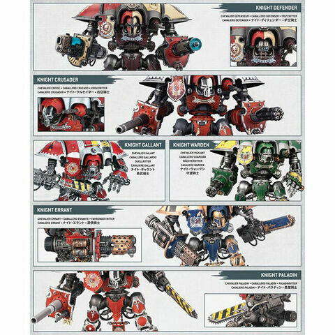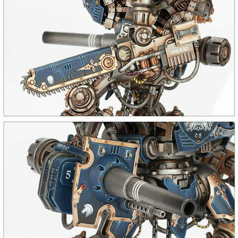 Imperial Knights are towering war machines – more than a match for vast swathes of enemy infantry, massive monsters, and heavy battle tanks. Bold and ever willing to risk peril, Knights plunge into the fiercest fighting, dealing death with cannons, whirring chain blades, and an arsenal of additional weapons.