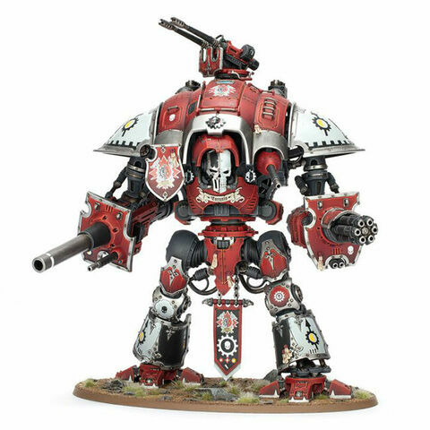 Knight Warden, armed with avenger gatling cannon, heavy flamer, meltagun (which can be replaced with a Questoris heavy stubber), and reaper chainsword (which can be replaced with a thunderstrike gauntlet)