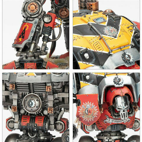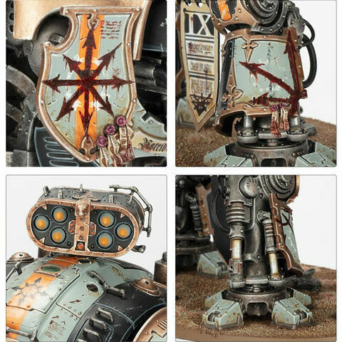 All based around the same towering chassis, each configuration brings an arsenal of weapons loaded with terrible power. Just one of these mighty war machines can change the outcome of an entire battle. With different noble faceplates, tilting shields, and other accessories, you'll be able to create a truly unique engine of war.