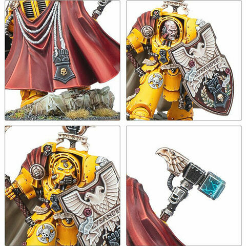 This multipart plastic kit builds Darnath Lysander, a legendary Imperial Fists warrior for your Space Marines armies in games of Warhammer 40,000. Clad in a sturdy suit of Terminator armour and equipped with his custom storm shield, Rampart, Lysander wades through incoming firepower before unleashing devastating attacks with his thunder hammer, the Fist of Dorn. He's ideal for leading your force to victory on the tabletop and makes for an excellent painting challenge. Lysander comes with a choice of two heads – helmeted or bare.