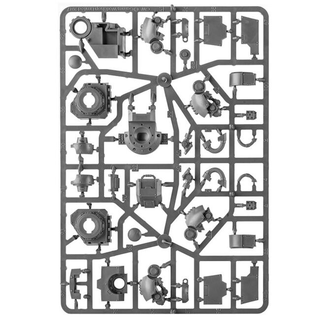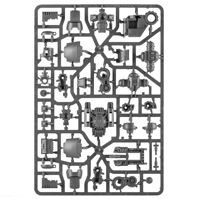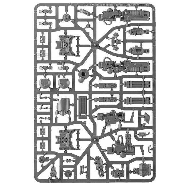 The Primaris Redemptor Dreadnought comes as 109 components, and is supplied with a Citadel 90mm Round base and a transfer sheet.