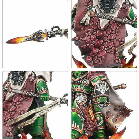 Vulkan He'stan, the Forgefather of the Salamanders, strides into battle with the weapons of his Primarch in his hands. As the seeker of the lost relics of Vulkan, he is relentless in his quest, willing to fight through any foe and face down any danger to see his oaths fulfilled.