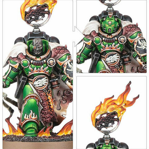The miniature is packed with Salamanders details, including Chapter iconography, finely wrought flames on the armour, and lizard scale. There is also a choice of two different heads – one with a helmet and one bare. Vulkan is an ideal addition to your Salamanders collection and excels at unleashing the fury of the forge upon the battlefield.