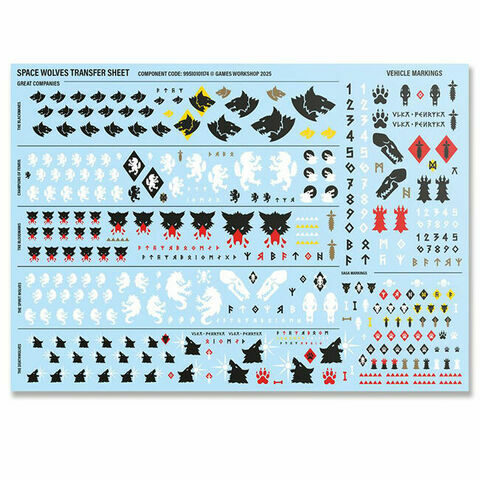 This kit comprises 246 plastic components, 10x Citadel 32mm Round Bases, and 1x Space Wolves Army Set Transfer Sheet containing 419 high-quality waterslide transfers to decorate your miniatures.