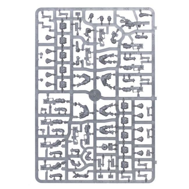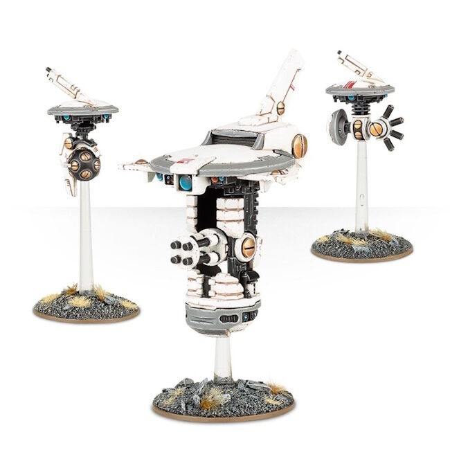 This multi-part plastic kit contains 137 components with which to make 10 Tau Pathfinders, a Pulse Accelerator Drone, a Grav-inhibitor Drone and a Recon Drone.