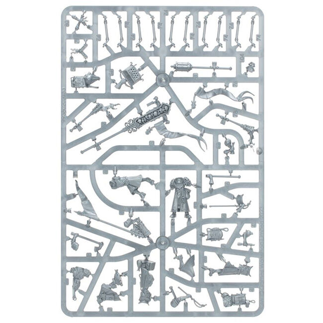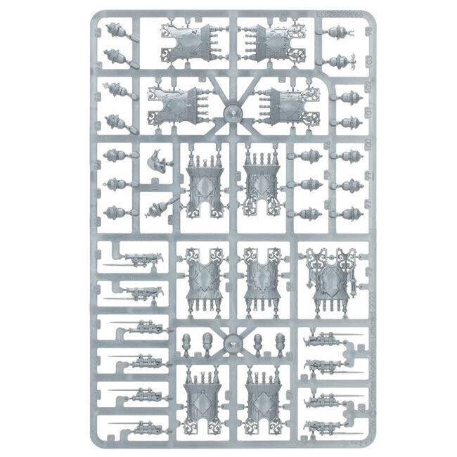 This kit comprises 115 plastic components, and is supplied with 10x Citadel 28.5mm Round Bases and 1x Citadel 25mm Round Base. Also included is a Cities of Sigmar Transfer Sheet, featuring 410 Free City icons, Sigmarite cult sigils, and other forms of heraldry.