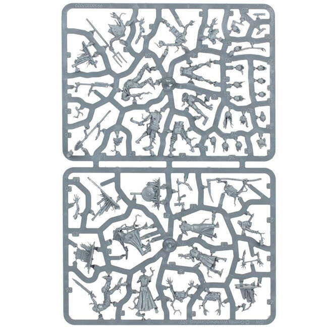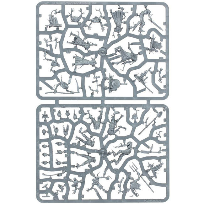 The kit is comprised of 94 plastic components, with which you can assemble 20 Deadwalker Zombies. These models are supplied with 20x Citadel 25mm Round Bases.