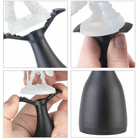 The painting handle's ergonomic, weight-balanced design will help reduce hand strain and keep your fingers free from holding the miniature itself. The slim, simple friction-fit topper holds your miniatures tightly and allows your brush to reach every nook and cranny without your fingers getting in the way. The topper also includes a slot for sub-assembly pegs from the Sub-assembly Holder, available separately, making it easy to paint heads and other small parts.